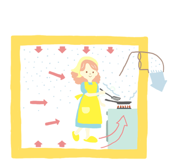 3.台所などで発生した水蒸気は、できるだけ早く屋外に排出する。