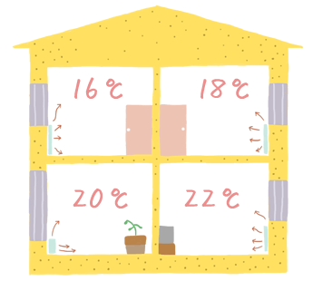 以上のような注意点を考慮すると、結露を防止するにはセントラルヒーティングが適していることがわかります。その中でも、室内が均一に暖まるふく射暖房方式が最適です。