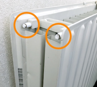 パネルヒーターの上部にあるエア抜き弁に、雑巾を当ててからエアキーを差し込んでください。