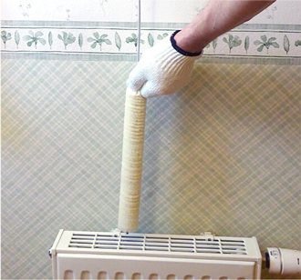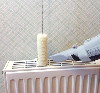 カバーの上からお掃除棒をパネルヒーター本体に差し込みます。