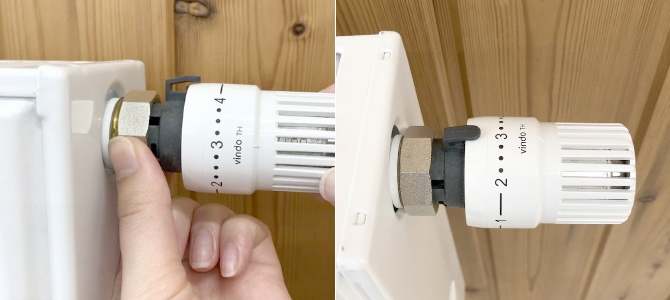 - サーモスタットヘッドは、周囲の温度を敏感に感知して作動しますのでテレビ、電気スタンドなど熱をもつものを近くに置かないでください。
