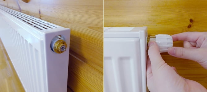 片手で、バルブ本体を持ちながら、もう一方の手でナットを緩めます。