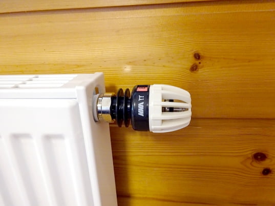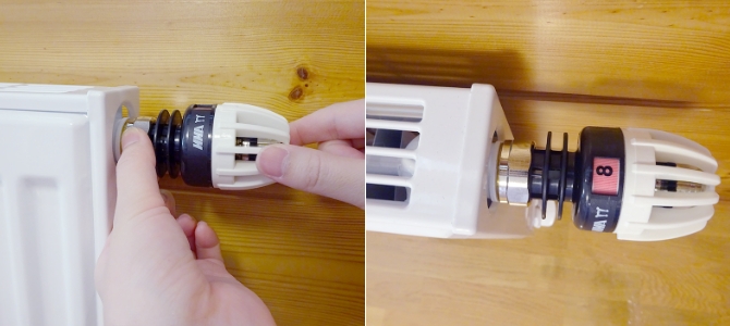 サーモスタットバルブの温度調整スケールを希望の室温に合わせます。