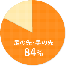 体の末端は特に冷えやすいですが、「手先」よりも「足先」に冷えを感じる人が圧倒的に多く、71%を占めています。フローリングの冷えを直接感じることも多いので、室内ではスリッパや靴下を履いて過ごすのがおすすめです。